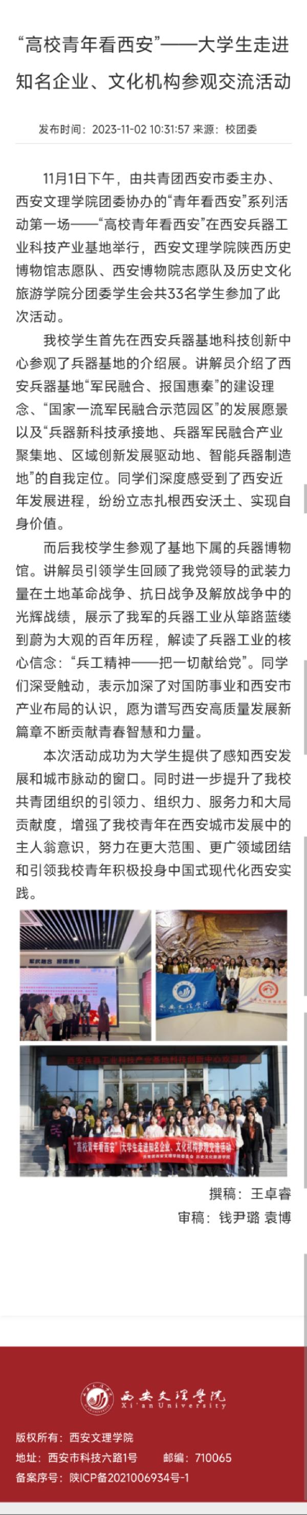 ‘高校青年看西安---大学生走进知名企业、文化机构参观交流活动