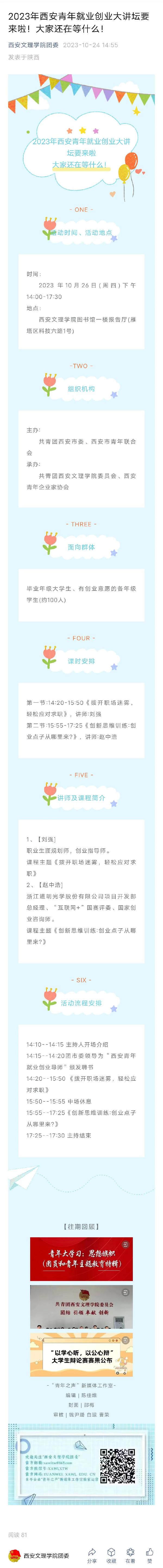2023年西安青年就业创业大讲坛要来啦!大家还在等什么!