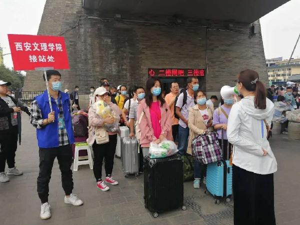 为确保我校迎新工作高效有序进行,让新同学真正感受到如家般的温暖。我校各部门充分准备,统筹兼顾。秉承着“奉献、友爱、互助、进步”的宗旨。多位志愿者相互配合,通力合作,轮班赴岗,在火车站及高铁站接站点迎接新同学的到来。