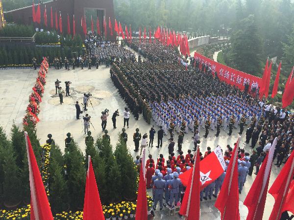 仪式开始前,由军休干部组成的合唱团献唱一支《十送红军》表达了人民对红军、对胜利的厚重情感歌声刚歇,低沉的钟声宣告仪式正式开始。仪式10点正式开始,参加此次仪式的有省市级领导、军队离退休老干部代表、烈士亲属代表、武警官兵代表、大中小学生等各界群众代表。