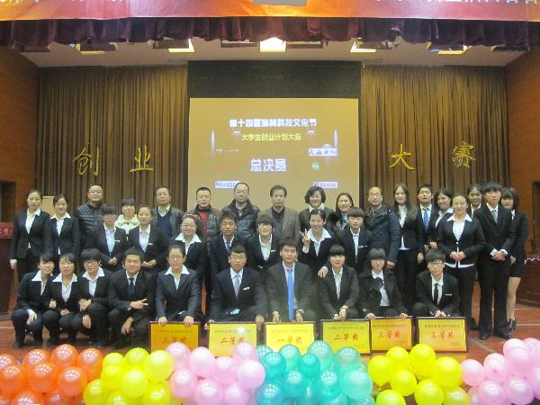 2014年12月24日下午4:00,九游(中国)第十四届科技文化节大学生创业计划大赛决赛在明德楼A区报告厅举行。副校长韩权、校团委书记成瑶、物电院党总支书记杨军、文化与旅游学院书记骆尚利、思政部党总支副书记巩建萍、文化与旅游学院党总支副书记杨燕华、商学院党总支书记张剑萍、副书记李晓煜、陕西省创业俱乐部主席团等作为嘉宾参加本次比赛。担任此次大赛的评委有:教务处副处长徐东升、校团委教工团总支书记王莉、商学院院长张丹、商学院教学副院长徐寄鸿、商学院教学副院长刘鸿明、商学院教师吴琦。