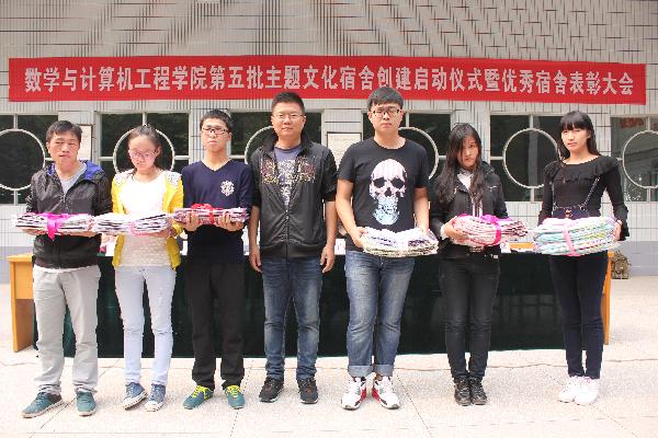 大会首先由马修海老师宣布了《数学与计算机工程学院对2013——2014学年优秀主题文化宿舍进行表彰的决定》,会上表彰了综合优秀奖6个、单项优秀奖6个、鼓励奖10个;院分团委书记张莹宣读《我爱我家——优美床铺我设计活动实施方案》;院学工办主任宋涛宣读《数学与计算机工程学院主题文化宿舍创建活动方案》;优秀宿舍的学生代表和第五批创建主题文化宿舍学生代表分别进行了发言,表达了主题文化宿舍创建决心和信心。