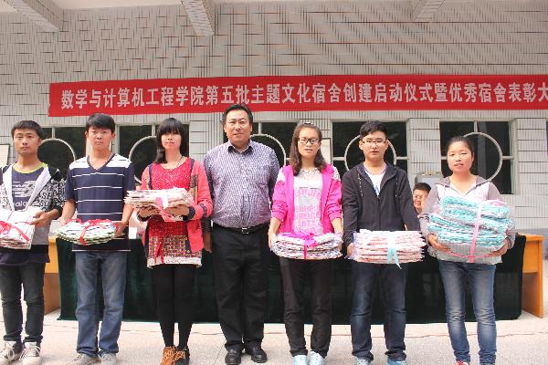 10月9日中午,数学与计算机工程学院在石榴花广场举行了第五批主题文化宿舍创建启动仪式暨优秀宿舍表彰大会。学生处副处长武军安老师,校团委副书记武文斌老师,院党总支书记王克盈老师、副书记马修海老师,数计学院全体辅导员和学生代表四百余人出席了本次大会。