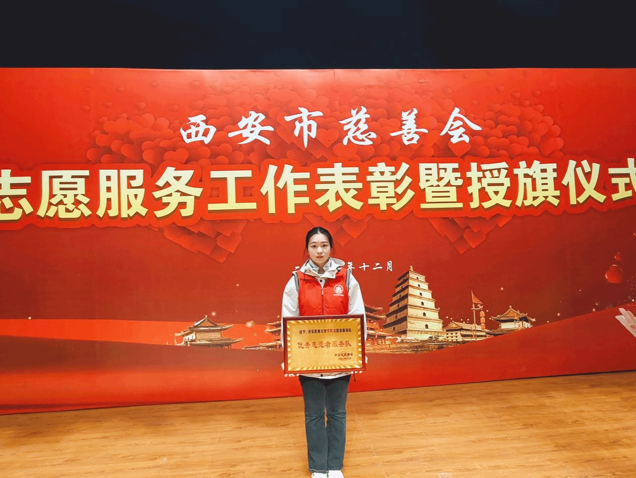 西安慈善文理学院志愿者服务队是在校团委的指导下,由校青年志愿者协会、各二级学院青年志愿者协会分会、爱心社等公益社团志愿者骨干组成的志愿服务队伍,旨在通过践行“奉献、友爱、互助、进步”的志愿服务精神,凝聚青年志愿者力量,充分展现了当代大学生主动担当、积极作为的良好精神风貌。
