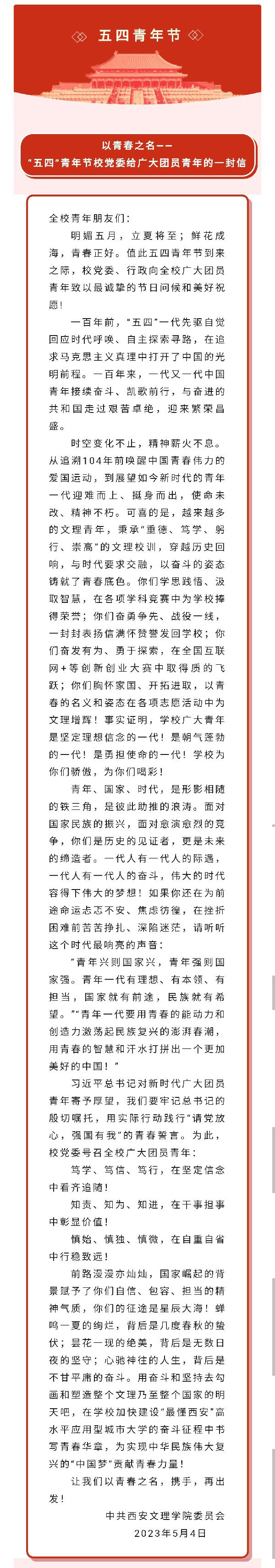 以青春为名——“五四”青年节校党委给广大团员青年的一封信