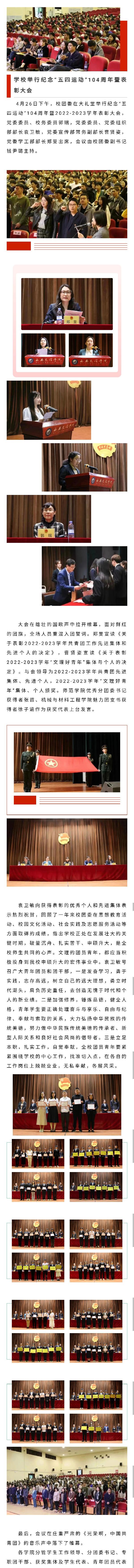 学校举行纪念“五四运动”104周年暨表彰大会