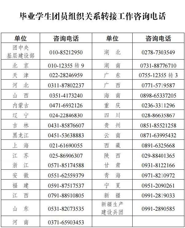 各级团组织要认真做好毕业学生团员的团员档案核查和组织关系转接工作,积极主动为广大团员提供贴心的帮助和服务。同学们在转接组织关系过程中,如果遇到困难或疑问,可登录“智慧团建”系统网页(zhtj.youth.cn/zhtj)查询相关工作流程,可咨询当地相关基层团组织,也可与团中央及各省级团委联系。